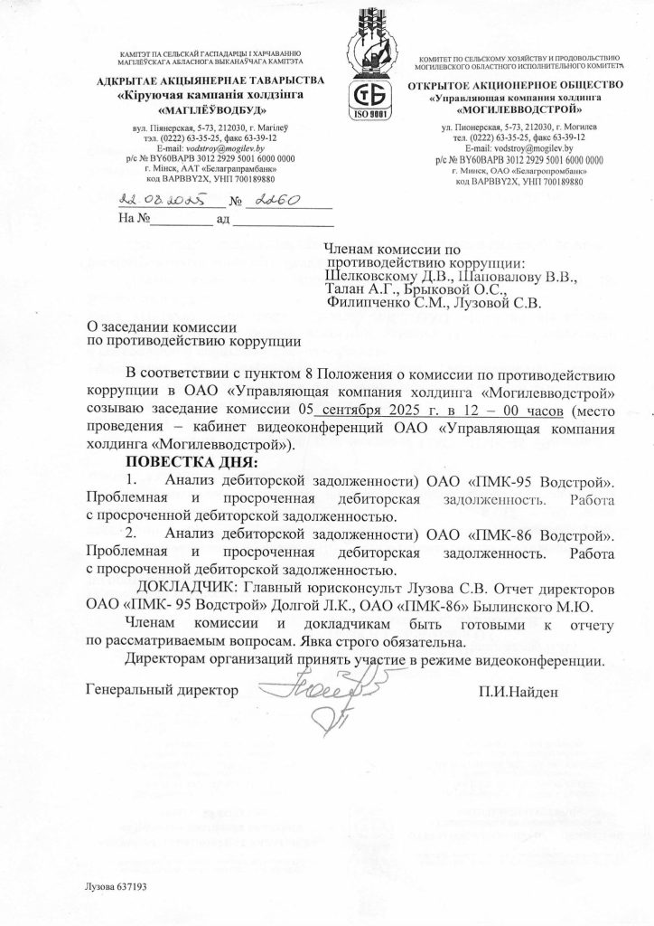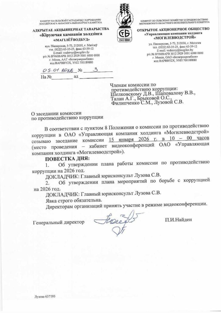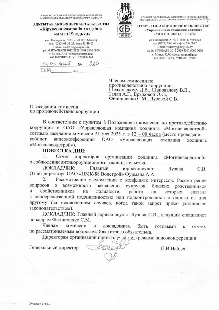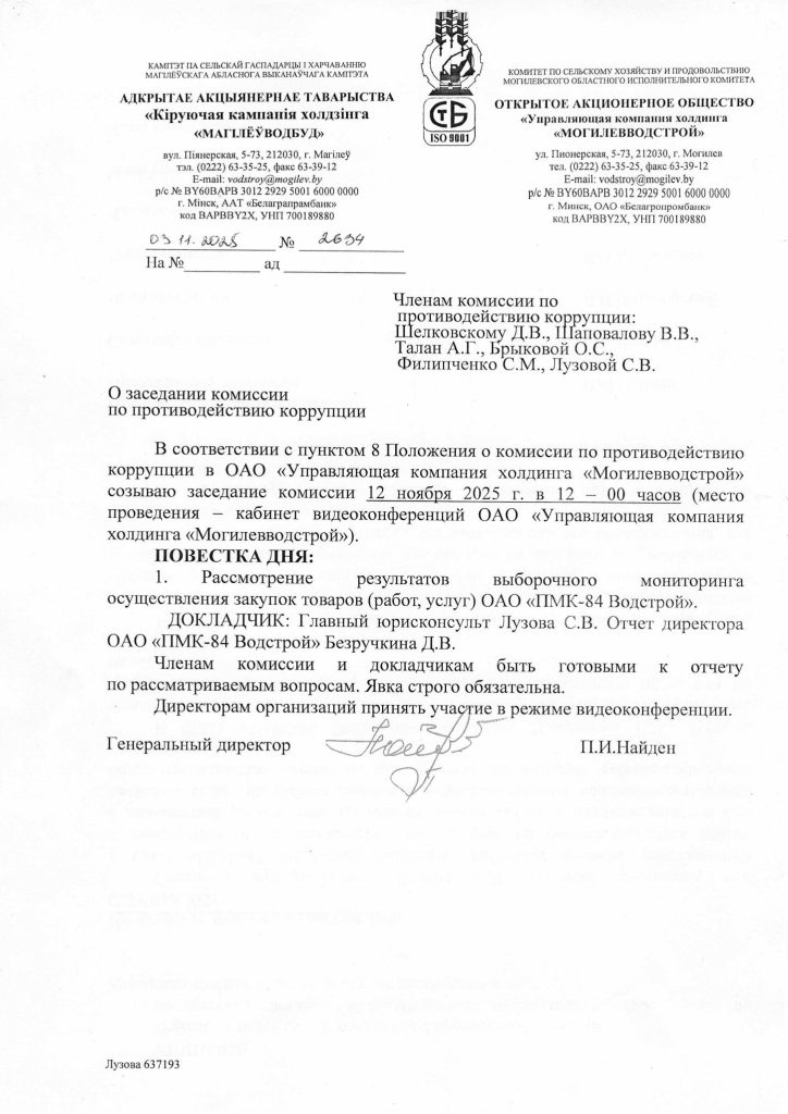 Информация о внутренней работе компании «Могилевводстрой»