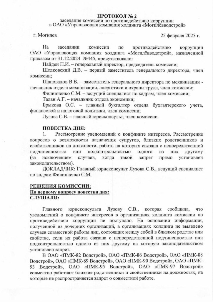 Протокол №2 заседания комиссии по противодействию коррупции