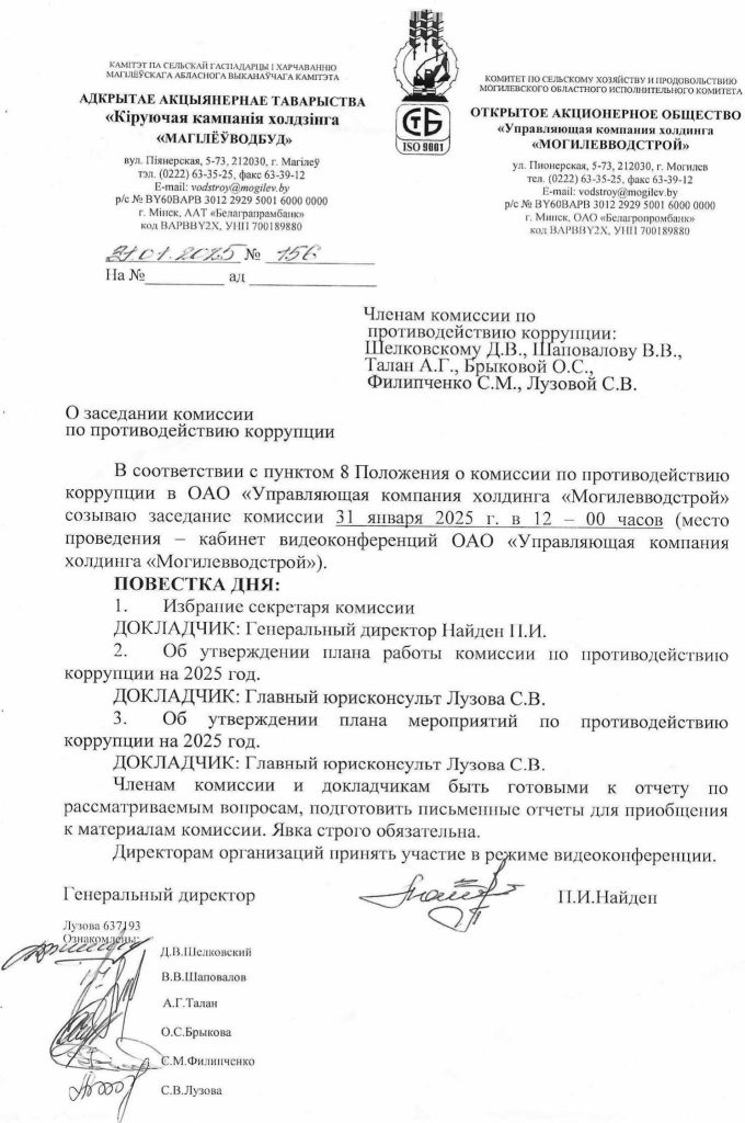 О заседании комиссии по противодействию коррупции 31.01.2025 в 12.00