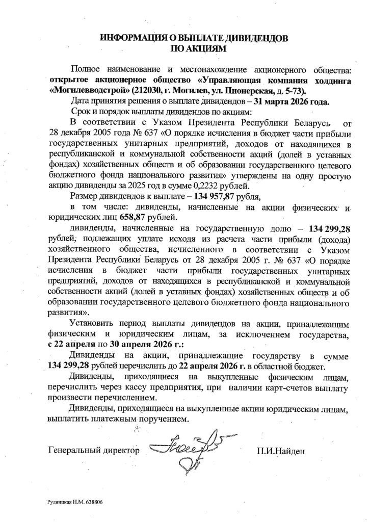 ОАО «Управляющая компания холдинга «Могилевводстрой»
